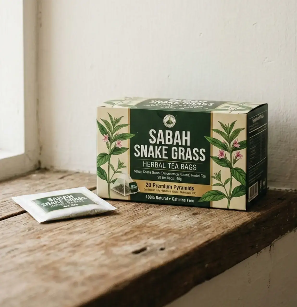 Sabah Snake Grass herbal tea bags carefully packed to preserve their natural essence and support antioxidants and daily wellness, perfect for a convenient soothing herbal tea.